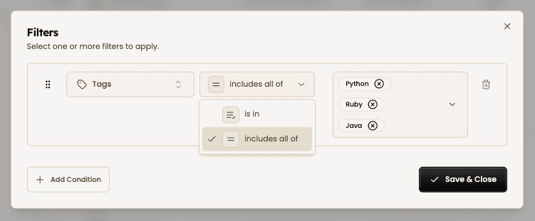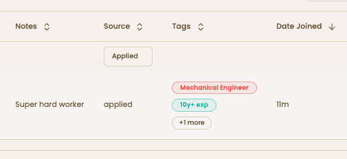 Custom tags one of the best ways to find candidates. It's super easy to both create and assign tags.