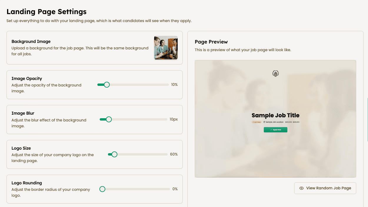 Upload a background Image for the application page. Currently, this applies to all jobs/clients.