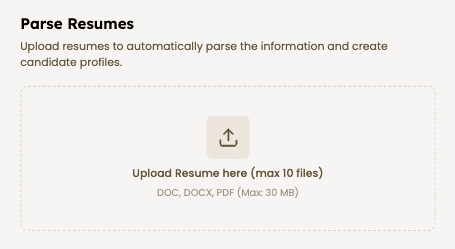 One of the easiest and best ways of getting candidates into your database is by using the AI resume parsing tool. You can add resumes in batches and it'll keep you informed on progress. You're not blocked so you can continue working in the meantime! Although it's pretty quick!