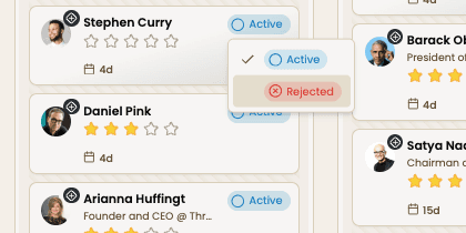 To change candidate status, simply click the status pill on the candidate card to update their status: