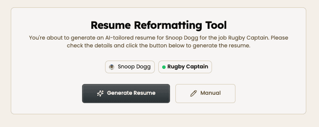 Double check the candidate and the role is correct and hit the Generate Resume button.