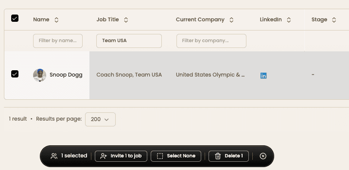 And start scraping! Click "Save to Happlicant" on any LinkedIn profile to add candidates to your database in a millisecond