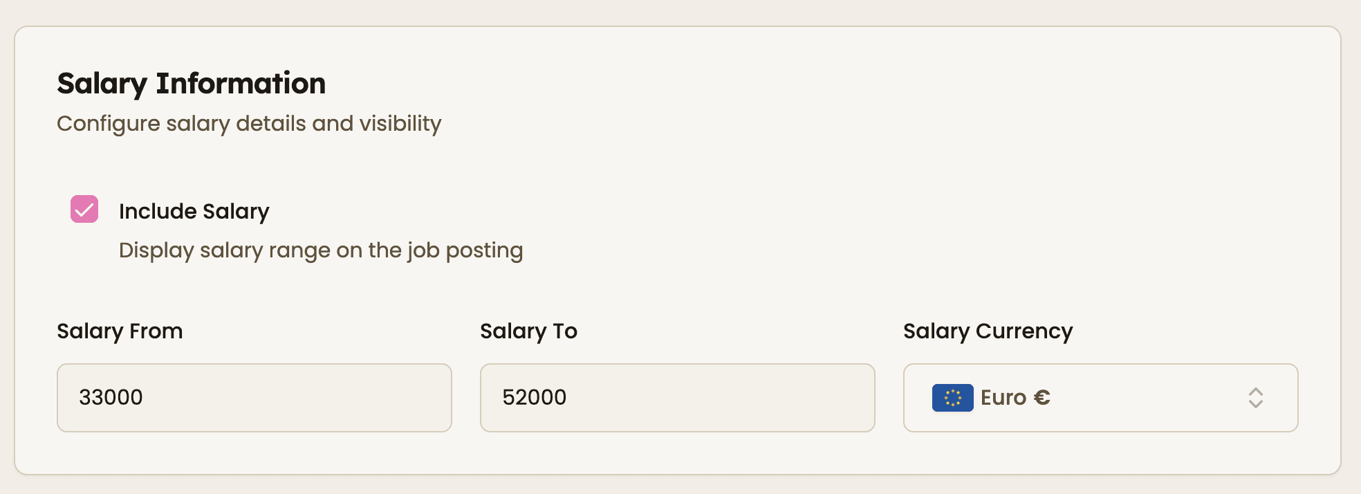 Start by adding a salary range when creating a job. This is required to calculate percentage-based recruiter commission.
