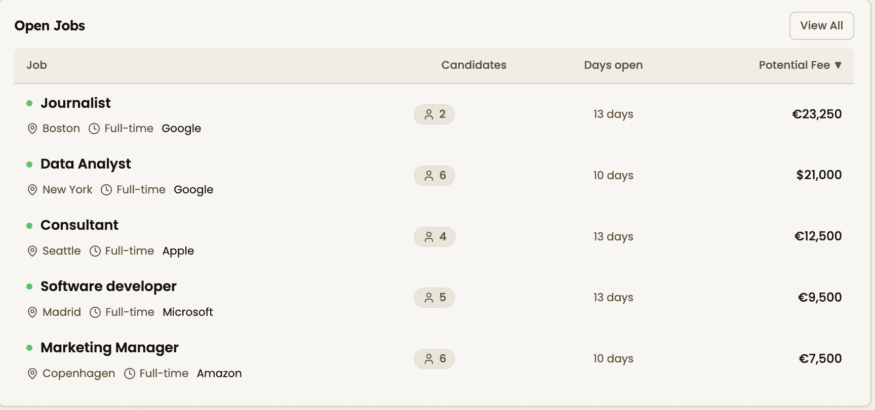The Open Jobs section gives you clarity on each active role, including: