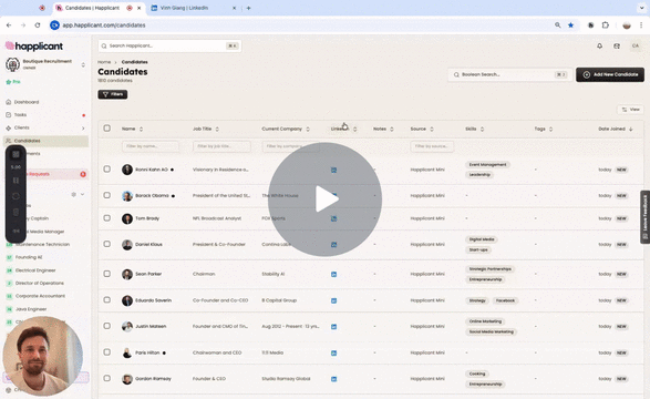 📣 Using Happlicant's LinkedIn Chrome Extension, the Resume Parser, or bulk importing you can easily auto-populate these fields.
